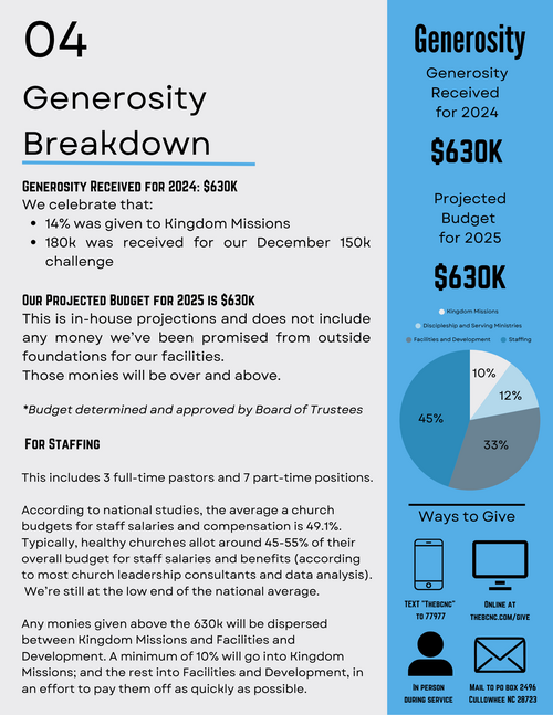 Take a moment to read about our 2025 Vision which includes moments to celebrate and the budget breakdown.