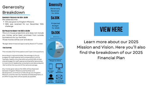 God is generous and so he calls us to be as well. What we do with what God has given us shows the world where our hearts are at and helps proclaim the gospel. We want to glorify God with every area of our lives, and that includes what we do with our finances.
